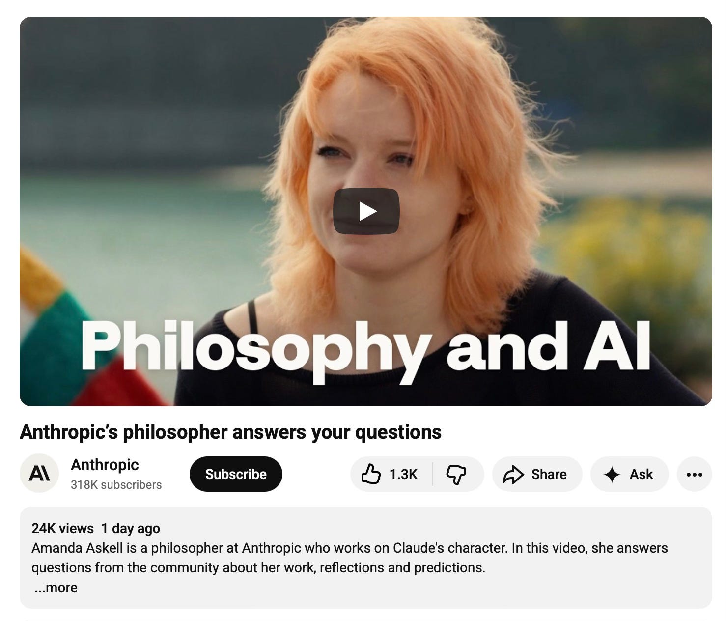 The interview: “Anthropic’s philosopher answers your questions“—worth the watch, worth the rewatch.